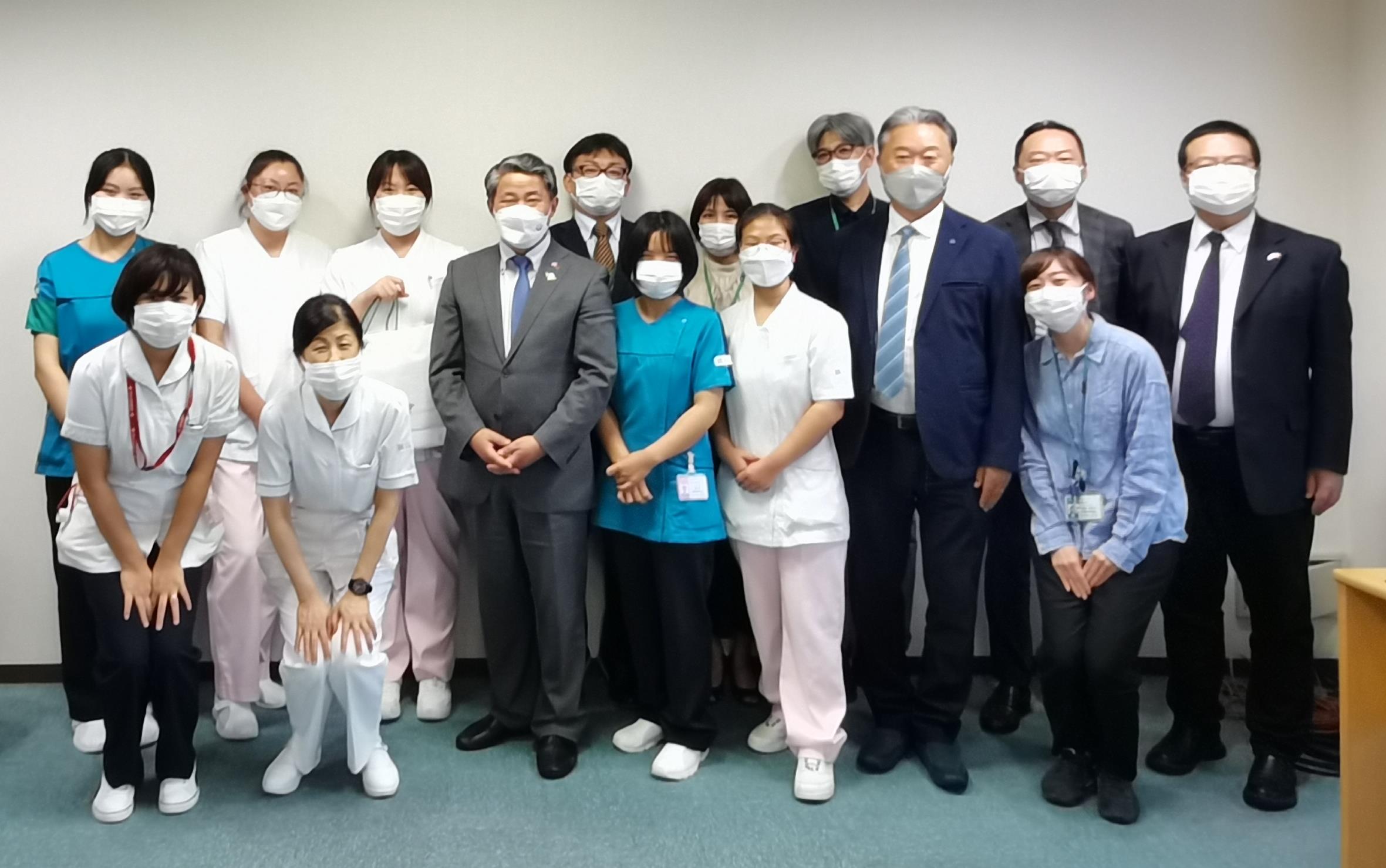 阪急Delicai株式会社是一家专门为日本各大超市和商场提供快餐便当的食品生产企业。在池田市和大阪市南港设有两家工厂,其中池田工厂有中国技能实习生16人。薛剑在企业负责人陪同下前往食品加工车间,实地察看了技能实习生的工作环境,与正在工作的中国技能实习生进行交流,了解其工作情况。锦绣会阪和第一泉北病院是一家集医疗、养老等服务于一体的大型医养机构,有中国技能实习生16人。薛剑考察了护理病区等工作环境,之后前往中国技能实习生宿舍探访他们的住宿状况。